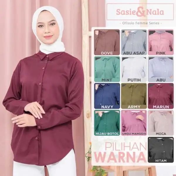 Kemeja wanita model basic yang cocok untuk kerja, ngantor atau kuliah, rapi,
